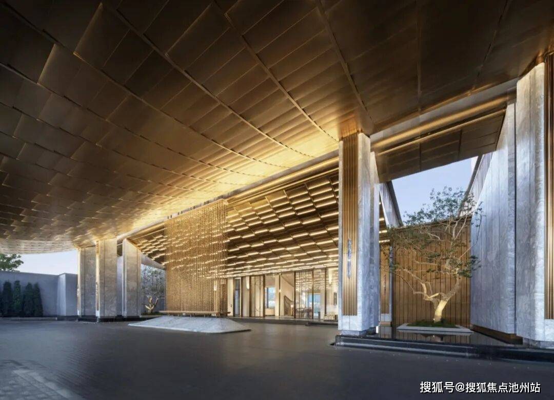 门庭景观融蕴东方哲思,选取种植8棵高大乔木、有罗汉松、铁冬青、朴树、金桂等珍稀树种,将奢石、水景与自然精巧融合,重塑一方承袭千年盛韵的尊荣场景。檐下光影空间明暗交织、移步易景,创造出既有礼序感又含沉浸式的归家体验。