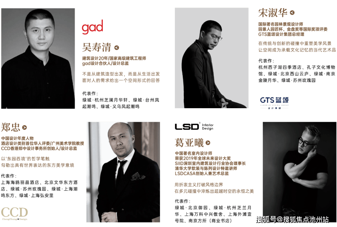 项目邀全球大师团队联袂执笔:gad设计合伙人吴寿清负责建筑整体规划、GTS蓝颂总经理宋淑华主持景观设计、CCD郑忠担纲室内精装、LSD葛亚曦完成软装与美学把控。