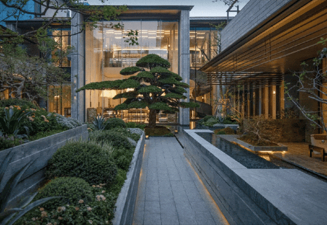 融汇苏州园林的行望居游系统,下沉庭院借鉴苏园的营造手法,构筑镜池云峰、溪山藏壑、鸣瀑留音红枫流霞、曲桥渡溪多重景观空间,还特别引进日本200年罗汉松,全冠移植,静立于下沉庭院,自成一处时光景致,为苏州定制一座典藏当代的山水名园。