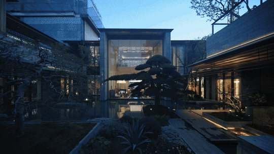 沿主轴铺展四季长卷,借松林、羽毛枫、乌桕、梅花等珍稀树种,呼应春华、夏茂、秋实、冬韵的时序意境。更溯源苏园之意,打造立体流动的山水庭院,模糊了自然与建筑的边界